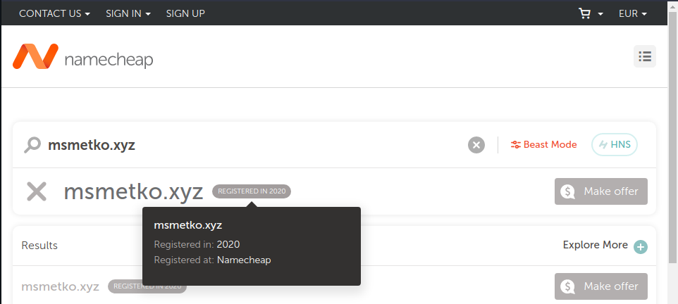Before I make my webpage, it would be great to have a domain. A domain is a string that takes you to a dedicated IP address. That mapping is stored by IANA and retrieved using DNS protocol. Domain names cost money, though. msmetko.com cost tens of € which was too much for my student budget. msmetko.xyz, on the other hand, cost like 2€ for a year, which was acceptable